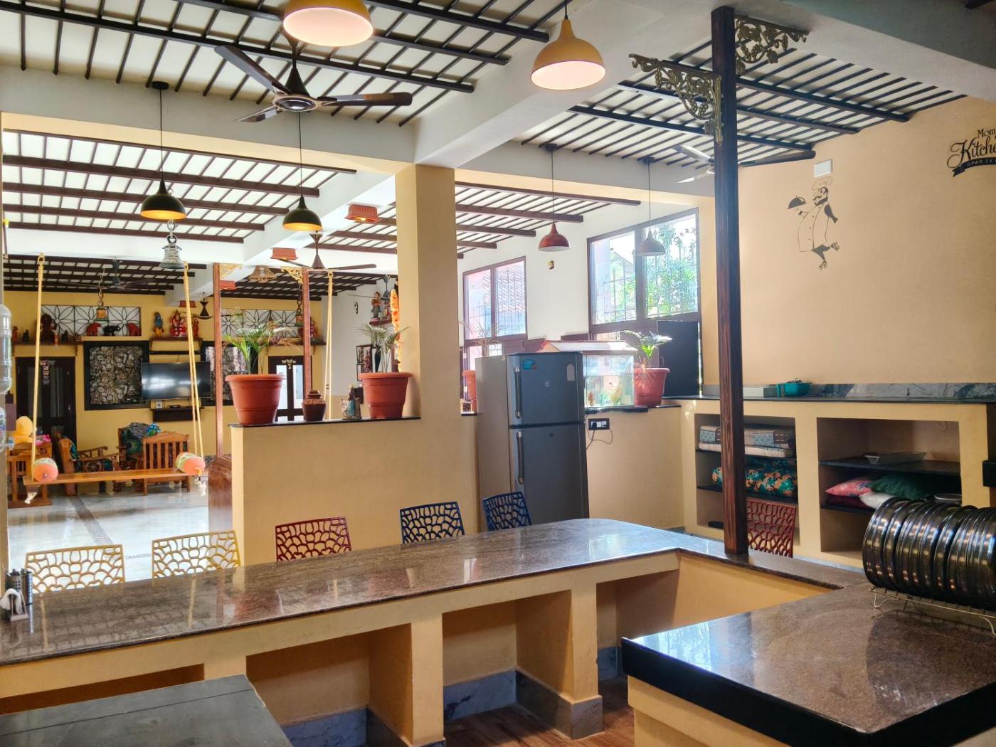 Offering a garden and river view, Maha Periyava Kuteeram is situated in Kumbakonam, 8.5 km from Mahamaham Tank and 10 km from Adi Kumbeswarar Temple. This property offers access to a terrace and free private parking. The property is non-smoking and is located 8.1 km from Kasi Viswanathar Temple.