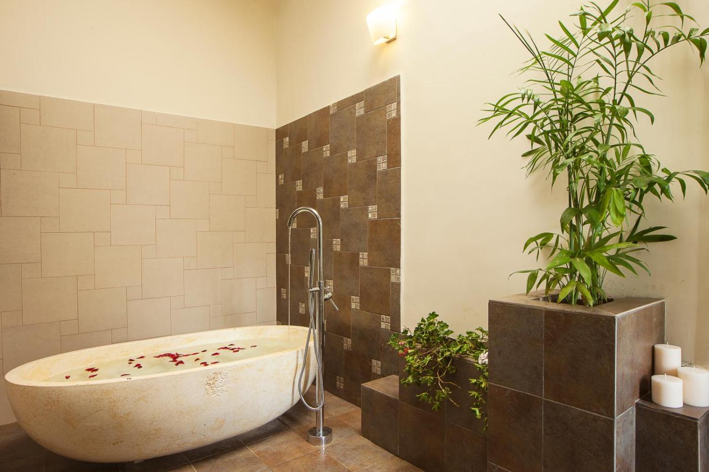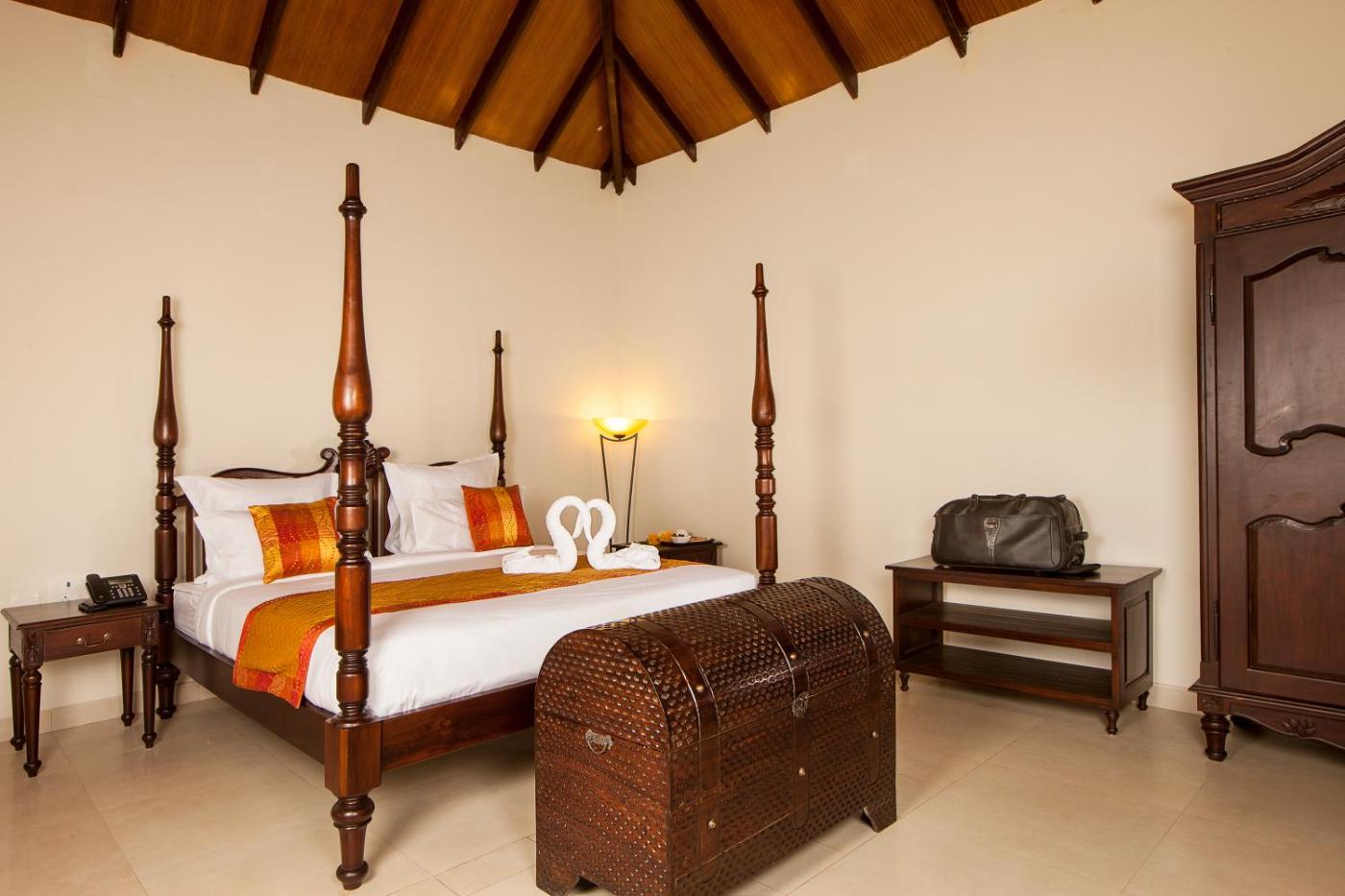 Spacious villas feature high ceilings and are fitted with a terrace opening out to the garden. They offer a flat-screen TV with cable channels, a wardrobe and a telephone. The en suite bathroom comes with a large standalone bathtub and a hairdryer.